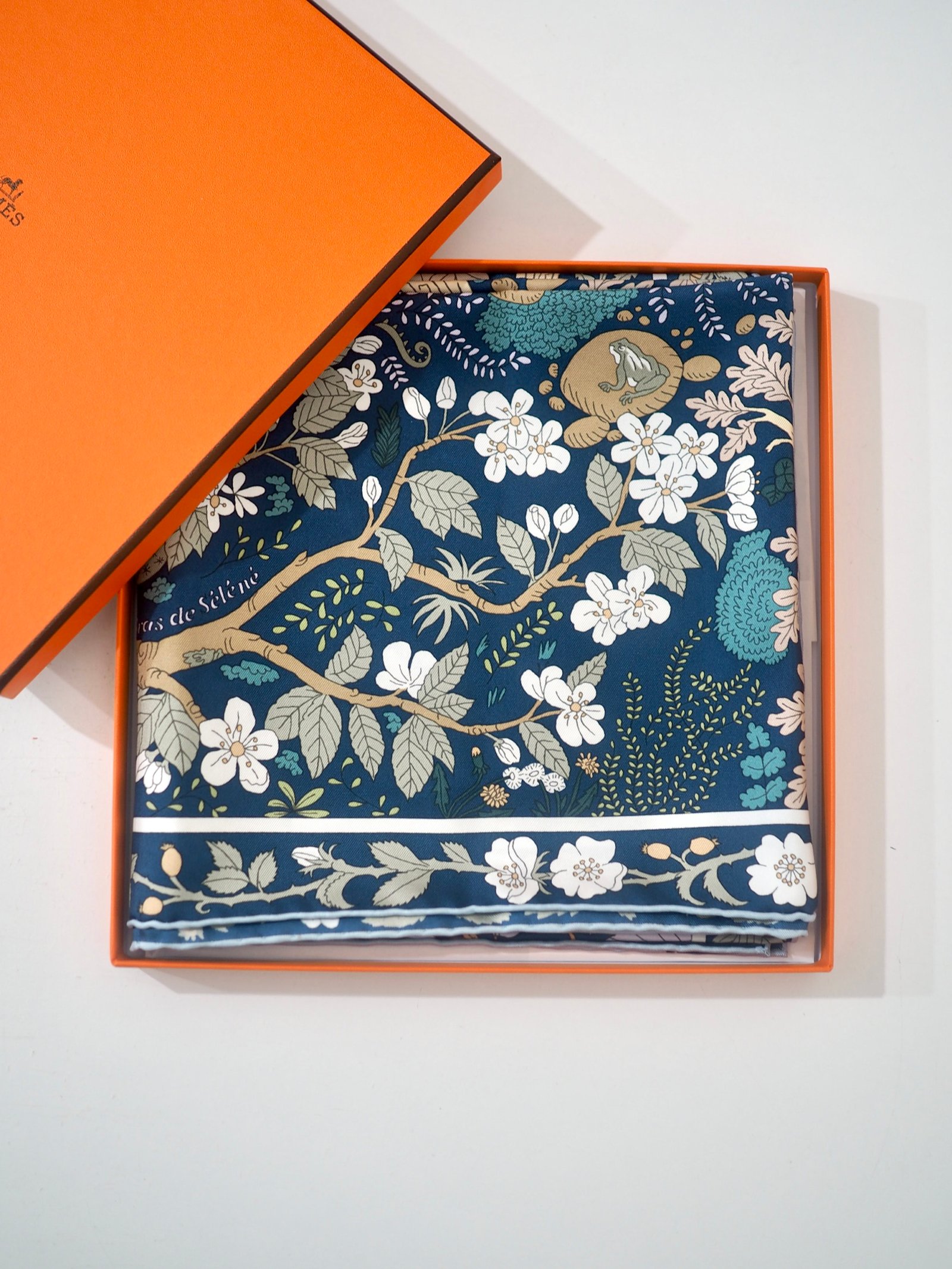 Fabric: 100% silk. Measurements: 90×90 cm. Made in France.